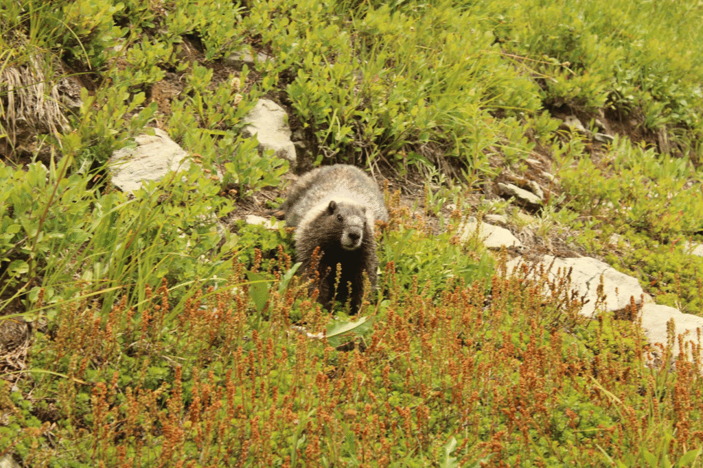 Wilderness day two was fourteen miles from Camp Tricouni to Camp Buckner which took a total of thirteen hours. The biggest takeaway from this day was the effect that the dramatic elevation changes had on the ecosystem around me. The first half of the day was spent in the lowland forests, marked by the three main tree species that create a temperature-regulating canopy. Here, densely vegetated clearings appeared intermittently, some deliberately cut to reduce wildfire spread. While effective, such clearings often invite invasive regrowth; along the trail, I saw crews using machetes and targeted herbicides to manage these outbreaks. The second half of the day, we ascended up to Park Creek Pass where the ecosystem rapidly changed from lush, dark green forests, to alpine meadows with smaller trees, more wildflowers, and more sunlight. Plants in the alpine zone grow closer to the ground to avoid wind and conserve heat. These plants help prevent erosion in the glacier filled mountain ranges. Park Creek Pass was also where I was first able to observe some of the fauna in detail. Marmot’s, large ground squirrels, littered the rocky pass. These animals move up into the mountains during the summer months to feed on wild berries and plants in order to build thick layers of fat for the winter.