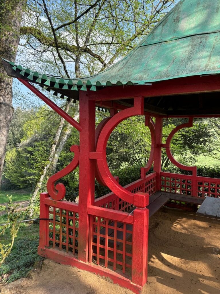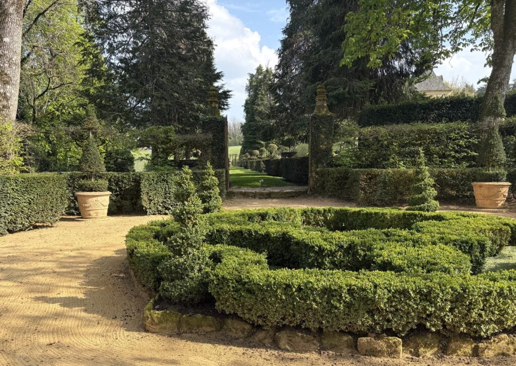 300 Yews, Box, Hornbeam and Cypress trees are expertly hand clipped by six full-time gardeners using the traditional methods—working with shears, cords and plumb lines. The manor house is from the 17th century, built with the beautiful honey-colored small stones of the region, and I was charmed by a small chapel still used by the family for special ceremonies. A scavenger hunt kept a young family occupied while we were there wandering into the Lover’s Room, the Topiary Farmyard, and over to the Chinese Pagoda. Eryignac is a fine way to spend a few hours on a sunny day.